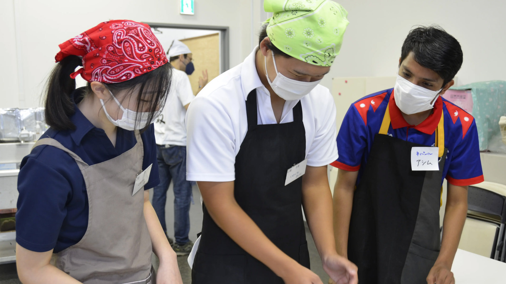 9/18(木)に法人内にあります「日本語学科」の留学生と【たこ焼き&味噌汁】を3班(クラーク生3名+留学生3名×3班)に分かれて異文化交流(調理)を行いました(^^♪