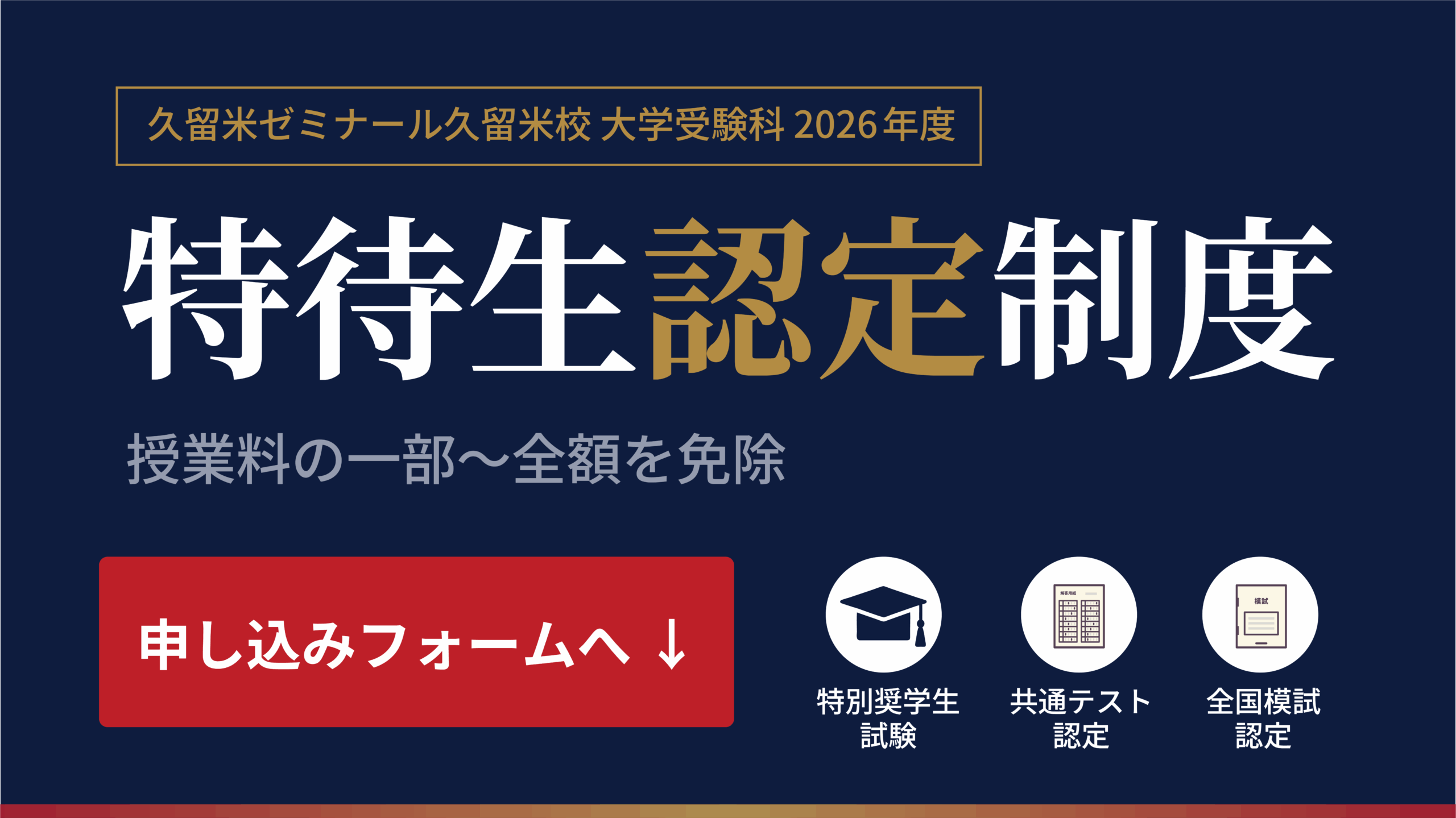 【この春、もう一度夢に向かって挑戦する皆さんへ】 来年こそ合格へ。久ゼミの「特待生認定制度」で、授業料の負担を減らして本気で挑もう! 「浪人することになったけど、費用が心配…」そんな方に、ぜひ知っていただきたいのが、久留 […]