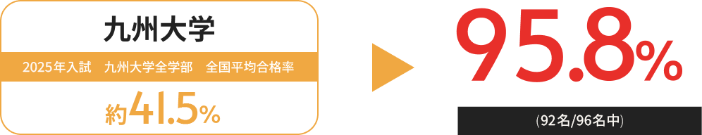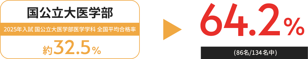 東京大・京都大・大阪大・一橋大・東京工業大・北海道大・国際教養大・九州歯科大・筑波大・神戸大・防衛大・自治医科大(医)・防衛医科大(医)・産業医科大(医)・久留米大(医・医)・福岡大(医・医)・兵庫医大(医)・国際医療福祉大(医)・川崎医大(医)・金沢医科大(医)・慶応大・早稲田大・上智大・明治大・法政大・同志社大 他多数合格