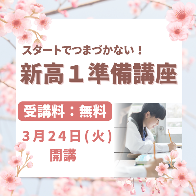【新高1生対象】受講料無料!スタートでつまづかないための、新高1準備講座